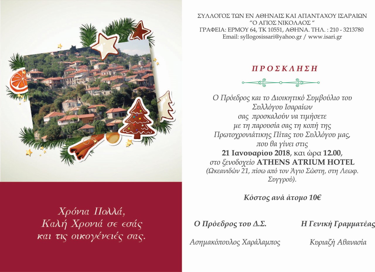 ΚΟΠΗ ΠΡΩΤΟΧΡΟΝΙΑΤΙΚΗΣ ΠΙΤΑΣ ΤΟΥ ΣΥΛΛΟΓΟΥ ΜΑΣ 21 ΙΑΝΟΥΑΡΙΟΥ 2018